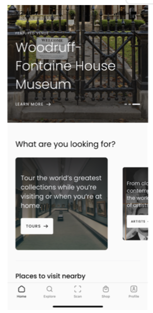 The Smartify app allows people around the world to view art, learn more about artists, view select pieces, and more. The app is organized by featured venues, tours, artists, places, and shop.